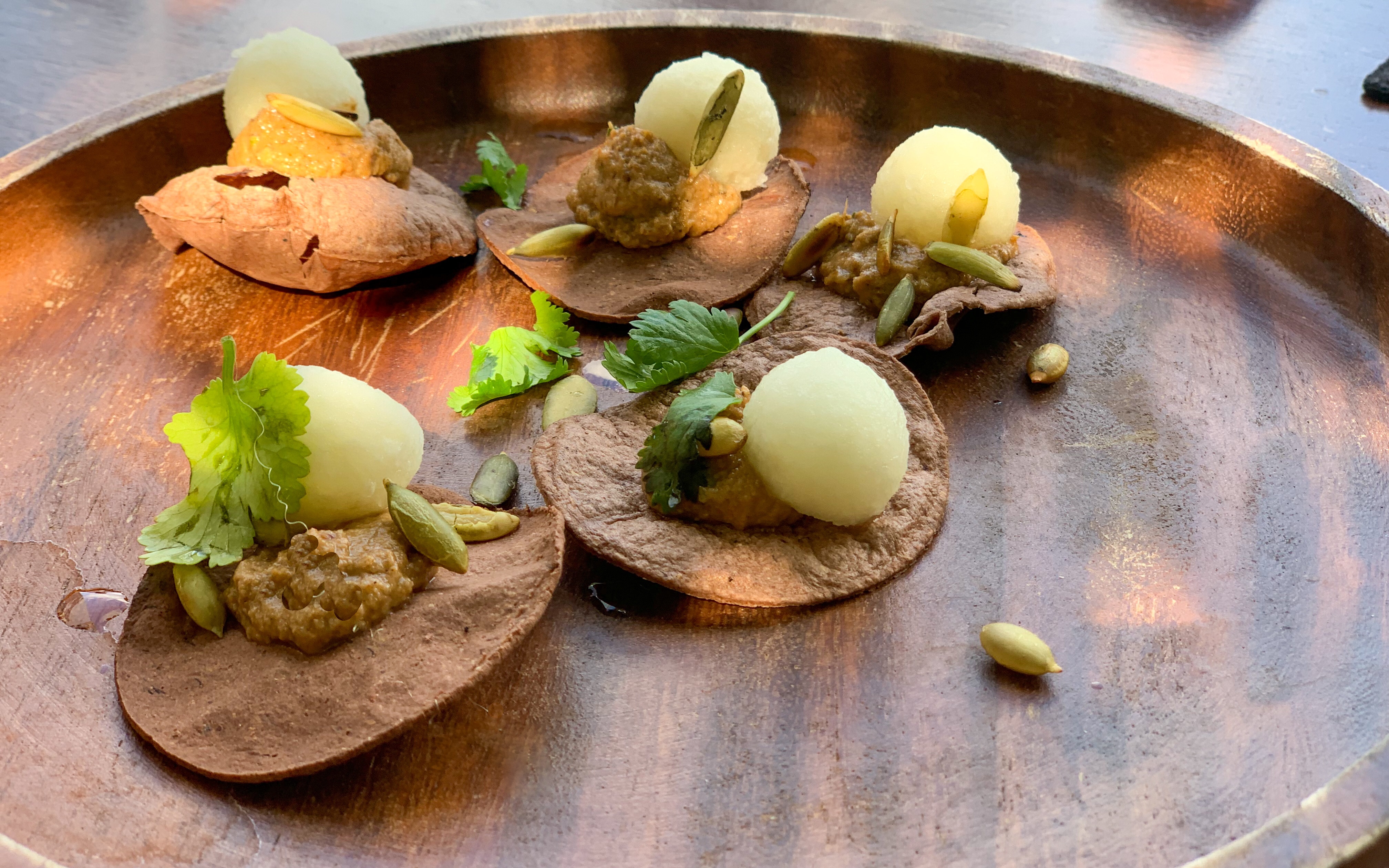 Estos tacos equilibran la suavidad del pulpo, el crujiente salado del guanciale y la frescura del romanesco, todo envuelto en una tortilla de maíz.